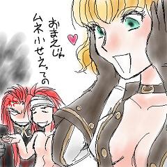 イオンの遺言を尊重してっつーか他にヒントもないのでベルケンドに来てみた。 スピノザに話を聞くと、アッシュがロニール雪山に行ったことが判明。いいかげん、ちゃんと話を聞かないとなあってことで、ロニール山へ… 行かなきゃいけないはずだったのだが。 いや、行ったには行った。 ただし、南口から。 そしてアルビオールの性能が強化され、これで竜巻やら霧やらに阻まれてた場所にも行けるぜきゃっほう! ついでにやりたいこといっぱいあるから、それもやっちゃおうっと。 じわじわネビリムイベントの準備もはじめて… そんなイベントの中で、サフィールは子供の頃、ジェイドの下僕だったことが判明…がんばれサフィール… ん?聖剣はマルクトにあるの?じゃあピオニー陛下に頼んでみよう。 て、部屋に無造作に転がってました…いいのかそこまで片付けられない男っぷりで… しかしそれを拝借するにあたって、問題が。 女性陣の「おねだり」が必須らしい。 ……陛下GJ! でもナタリア曰く、それじゃセクハラだと。 そりゃそーだよなーと思ったら、じゃあ野郎どももやれ、とさらなるGJ!! 普通に頼むルーク、丁寧なガイ、ぶりぶりアニス、すっげーいやそうなナタリア、初々しいティア… で、最後はジェイド。 「へーいかv」 が。 ジェイドのおねだりはキモイからいやだと断固拒否しやがった陛下… うおおおおいいじゃん見せてよジェイドのおねだり!とっておきのおねだり、きっと夢見てうなされるよ!! しかもリゾートキングだぜ!!w 結局ジェイドのおねだりは見られないまま、聖剣は手に入ってしまいました…喜んでいいのかなんなのか。 そういや魔剣はルークのだったけど、今度の聖剣てのはルークのじゃない?てことは…ガイー!!! うぎゃー!聖剣持ったガイ(憩いの配膳者)…想像するだけで鼻血噴きそう! 攻撃力はからきしだけど、光の剣という響きが…それが、ガイ…! むしろ光がルークで闇がガイだと思ってたのに、違うのね!! 変なところでハアハアしながら、マクガヴァンじいちゃんに次の武器の話を聞きに行った。 息子が管理してるってんでそっちに行ってみると、くれてもいいけど、と交換条件を出された。 まあそんな簡単にはいかないよな、で、なに? …またブウサギ探しでした。orz 陛下から拝領したブウサギ(そんなもんくれるな)をうっかり逃がしちまったので、探してほしいんだと。 しかも町の外ときたもんだ。うげーめんどくせー。 仕方ないからセントビナーから出て、アルビオール発進…したすぐ真下にいたよピンクの塊。影になって見えんかった。 てなわけで、あっという間に捕まえて聖槍げっと。 まあ今のところできるのはこれくらいなので、次いってみよう。 そう、今度はお待ちかね、ナム孤島ですよ!! ナム孤島は…その名のとおりの場所でした。 どっかで見たものがいっぱいだ! でもって漆黒の翼が何故できたのか、ここはなんなのかも判明。 そうか、ここもホドの事件が発端か… ちなみに漆黒の翼の部屋で天井からたらいが落ちてくるんだけど、ここでジェイドの頭に落としまくって遊んでしまった…リアクションが欲しかったなあ。 さらにスポットライトの下に入るとポーズをとりまくる場所があり、そこでも全員ポーズとりまくり。 アッシュも連れてきたいなあ…(*´∀`*) お、こいつが噂のうしにんですね!?かわいいじゃねーか! 弟を探してるっていうんで、勢いで探すことに…ティアのかわいいものメロはもうばれてますな。 脱走弟と、さらにそれを探して迷子になってる弟を探してる間に、なんでだか誘拐事件に巻き込まれ、その際ナタリアが正体を明かさないために犯人に名乗ったのは「マルクトの星」。 ……えーと… 仲間も犯人も固まってました。 何はともあれ無事に連れ帰ると、三兄弟がお礼をくれましたよ。 なになに…お、ナタリアの衣装!? その名も「マルクトの星」!! なんでも、そういう本があってナタリアは変装をお手の物とする美女怪盗に憧れてたんだと。 だからその衣装と称号で大喜びしてるよ… しかしこれ、また胸元の開きっぷりがすごい! 胸元どころか腹まで開いてるよ!! 水着に続いてこれじゃ、アッシュが失血死しますよ! ちなみに本の女怪盗はばいんばいんだそうで、ティアのほうが似合うんじゃないかとうっかり口を滑らせたルーク…もうティアのチチ大好きだろおまえ。 そして怪盗になったナタリアは、ちゃんとスポットライトの下でポーズとってきましたよ。 ん?牛長男がさらになんか言ってるよ? 巨大魚の骨がほしい?んー、貴重品だけどあげよう。 すると何やら鍵をくれました。 そして今度は… ドラゴンバスターきたー!! うぎゃー何これ!!8面ボス強えよ!! …全然無理です。 もっと強い武器とか火とか超振動とかたんまり拾っていかないと… これのクリアは今は諦めて、アッシュがサフィールの二の舞にならないうちにロニール雪山行くか。 |